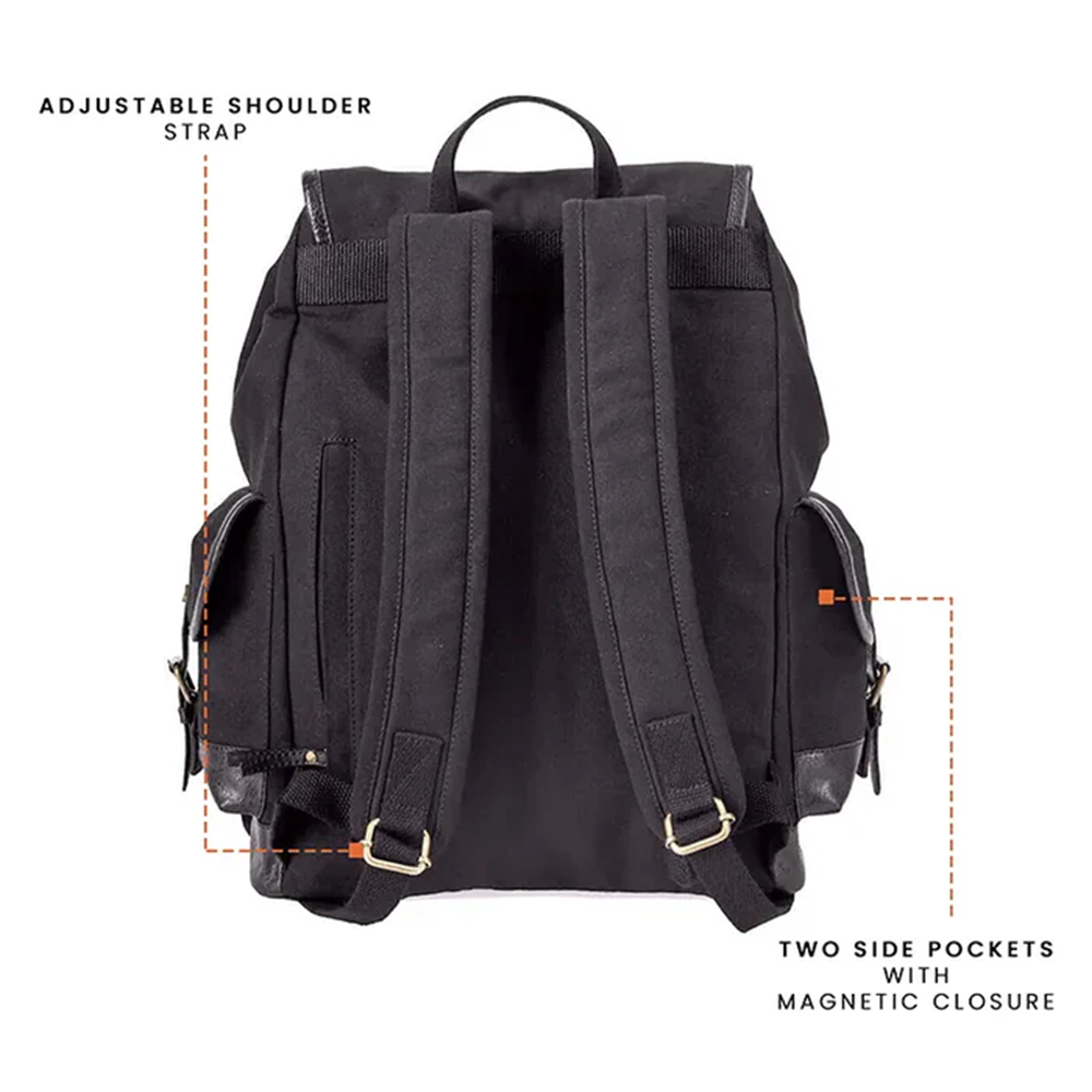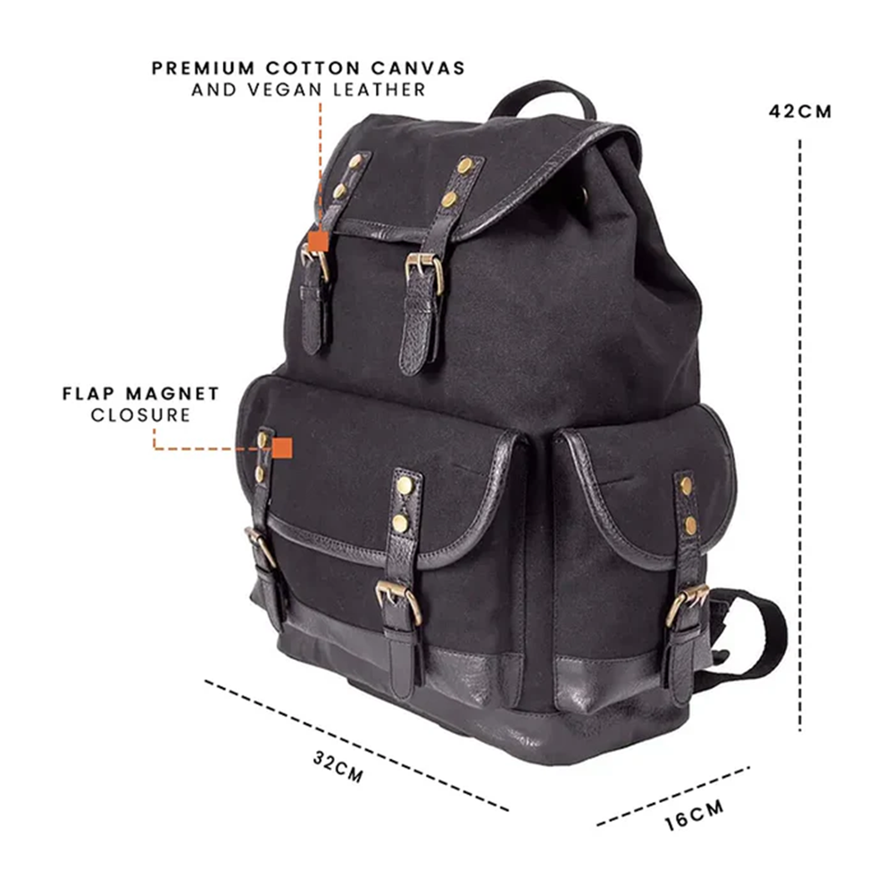 Introducing MonaB Explorer Backpack (Black) – your perfect everyday companion! Made from eco-friendly cotton canvas and vegan leather, this backpack is designed to make your life easier while keeping you stylish with the latest fashion. This backpack is built for convenience and comfort with plenty of pockets, a safe spot for your laptop, and a comfy shoulder strap.