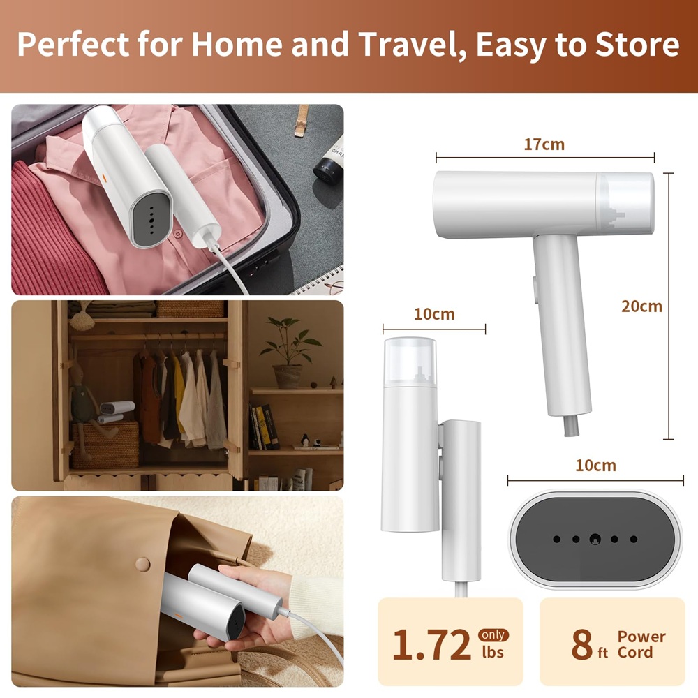 • One-Button Operation: This mini garment steamer operates at a single setting for all fabric types, allowing you to just press a button and start steaming.