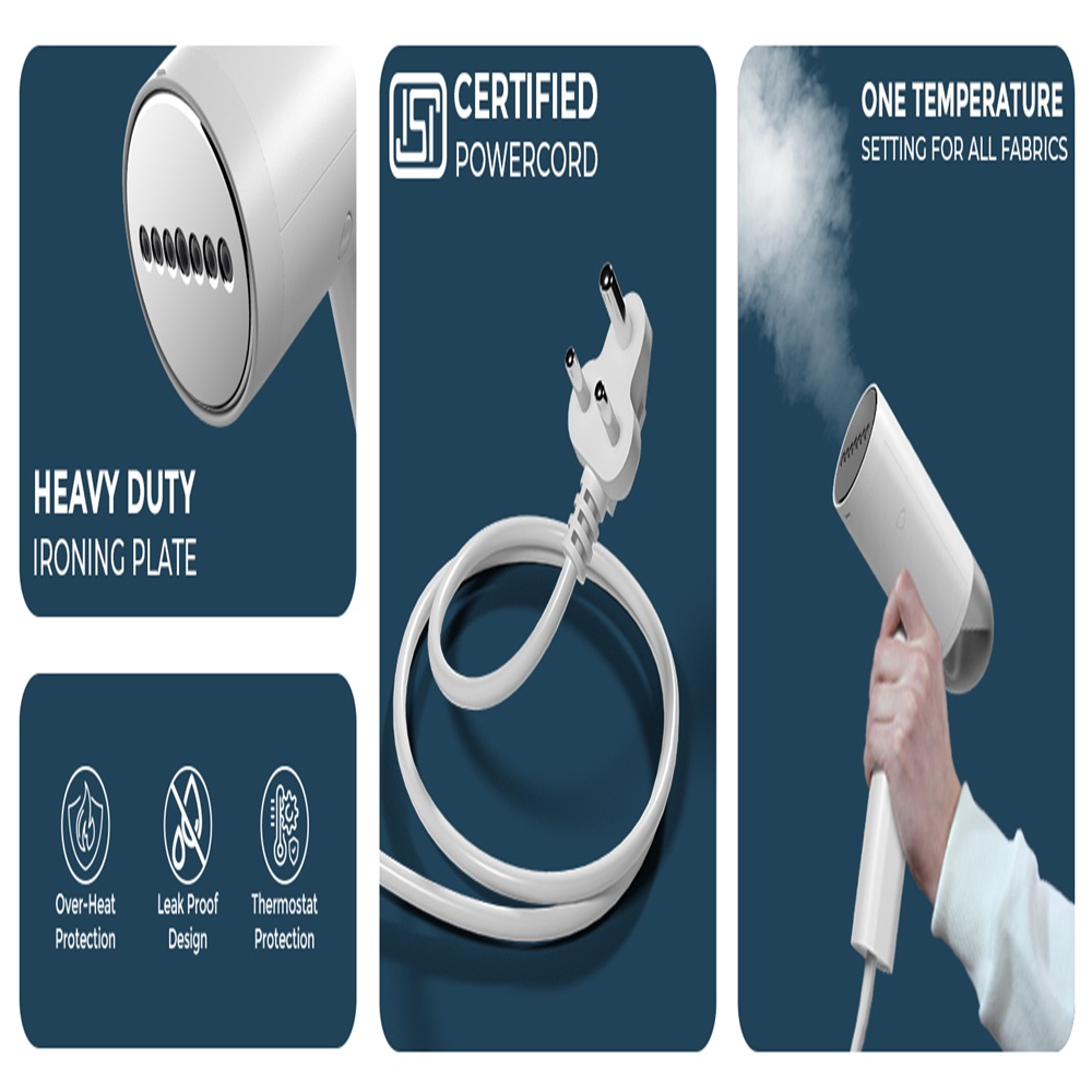 • Specifications: Wattage: 1200W | Capacity: 150ml | Steam Output: 20g/min | Voltage: 220v | ISI Certified Power Cord.