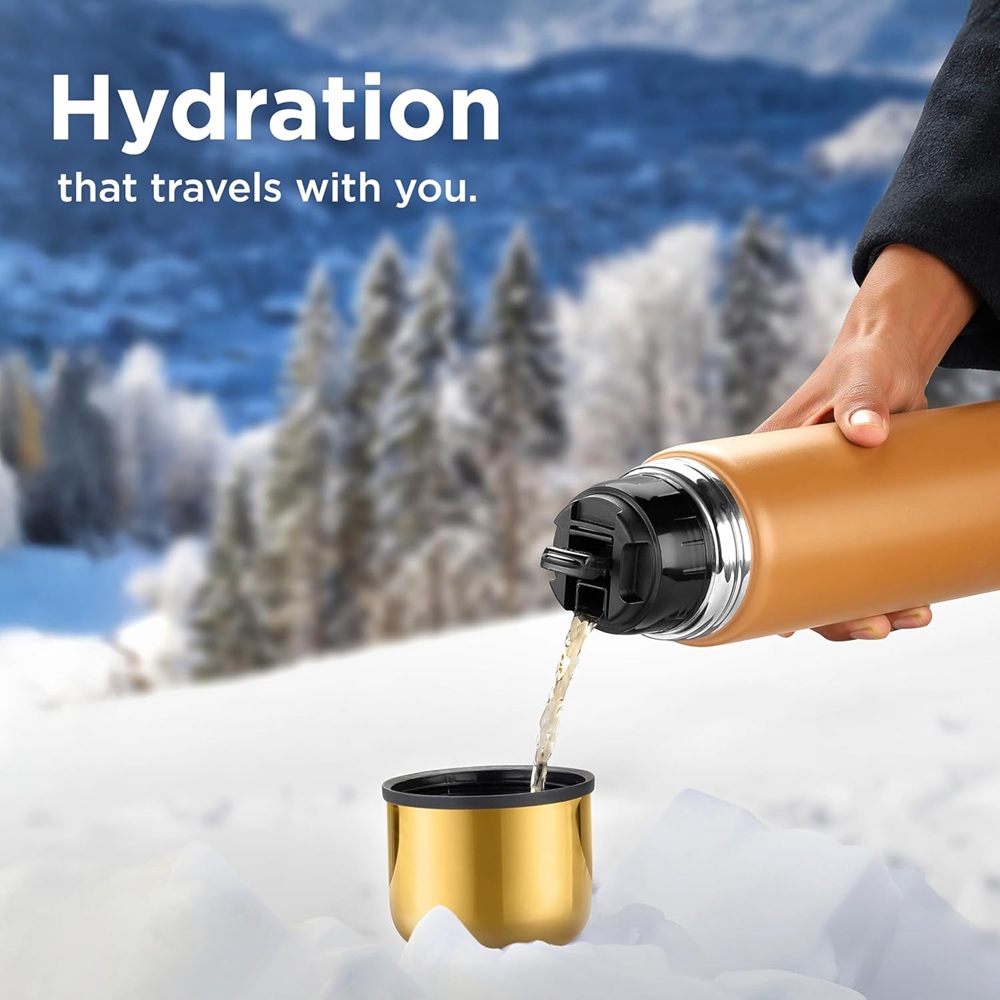 • HOT or COLD, ON THE MOVE — Enjoy your favorite drinks, hot, cold, or at just the right temperature, however you like. The easy-to-pour leak-proof cap with a flip lid keeps things mess-free, while the premium and elegant gift box packaging makes it an ideal luxury gifting choice for birthdays, anniversaries, weddings, corporate events, housewarmings, or festive occasions. Perfect as a premium bottle gift for him or her, combining style, functionality, and elegance for your travel, office, or home use.