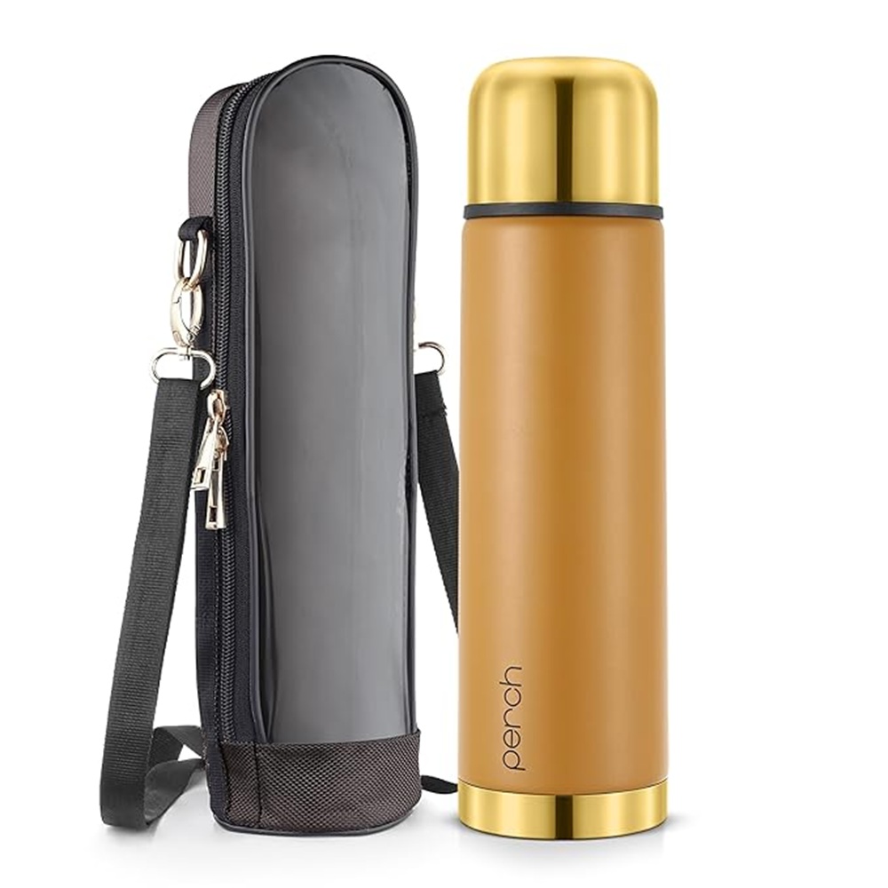 Perch Magic Stainless Steel Water | Bottle With Dual Cap and Straw Cleaner | Single-Wall Fridge Bottle