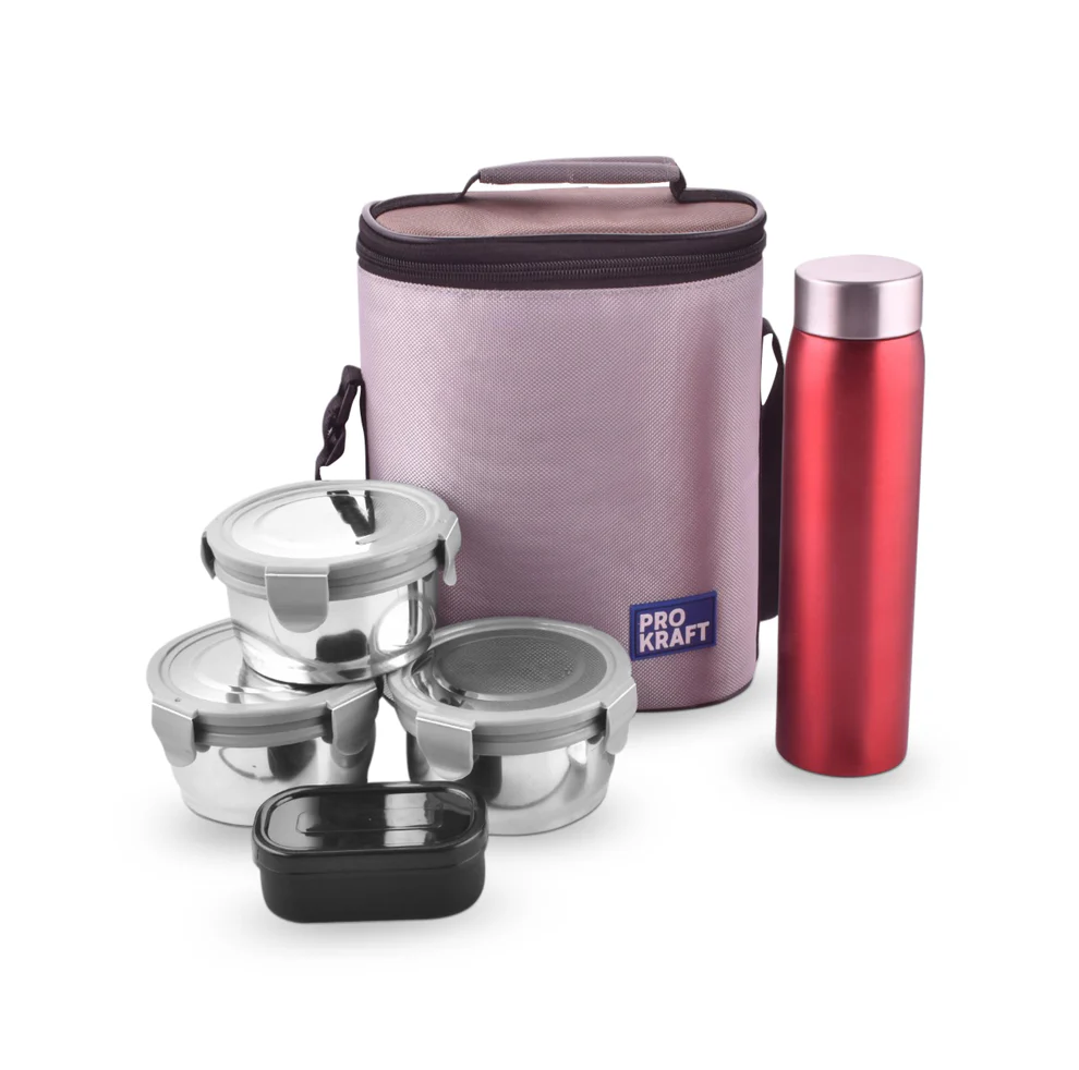 Prokraft Steel Stash Lunch Box Set (300×3+150+650 ML)