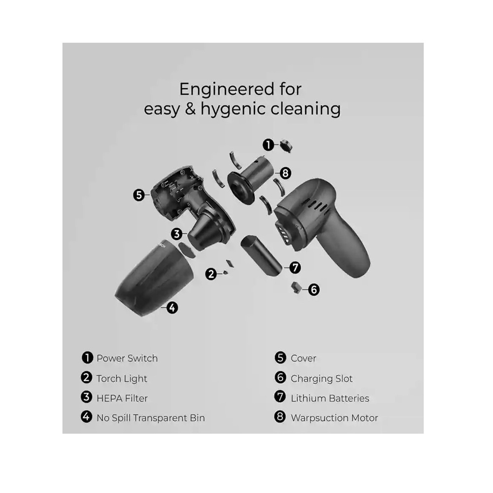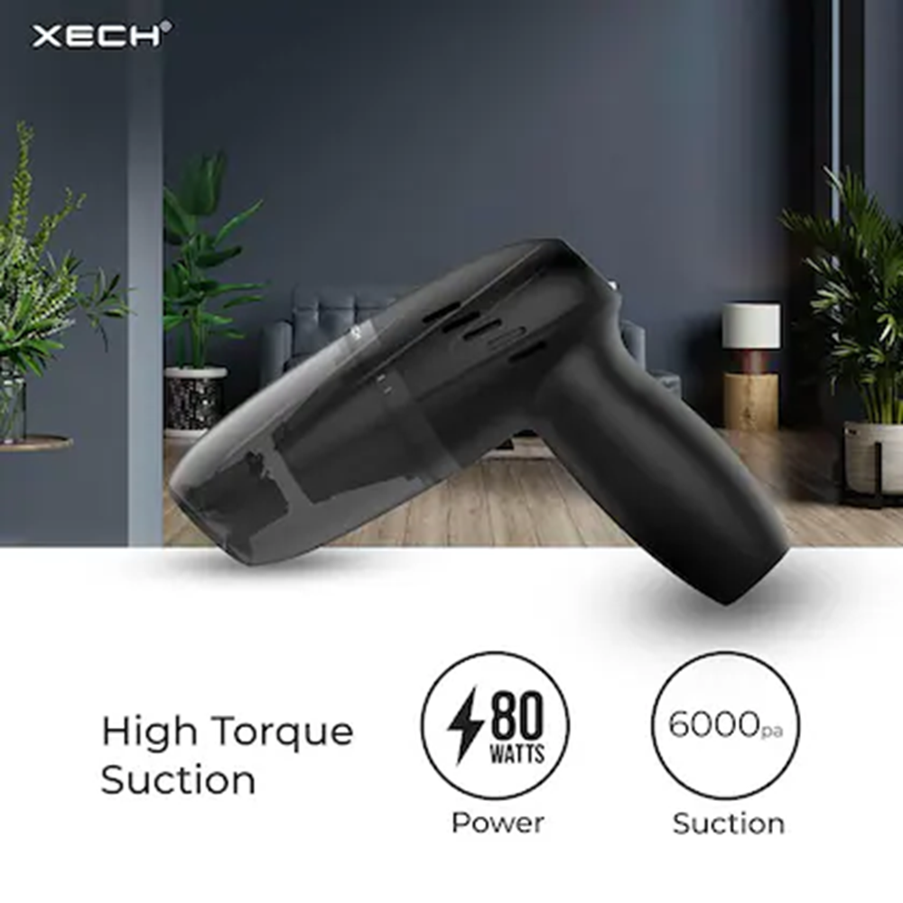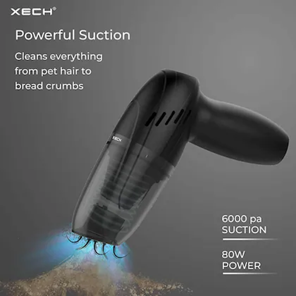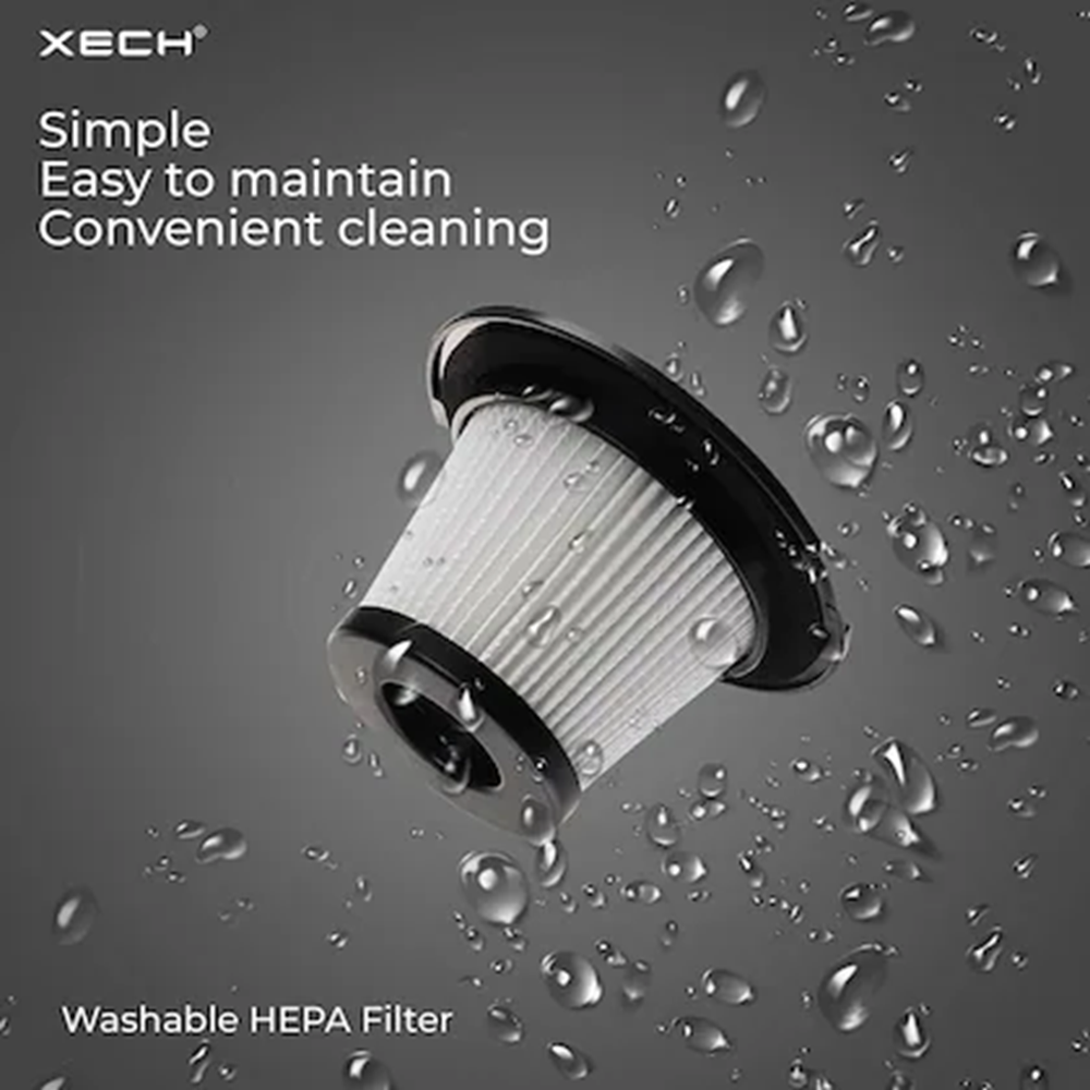 Cordless Rechargeable Handheld Vacuum cleaner that is thoughtfully based on humanised design to offer unmatched ergonomics to make cleaning effortless. At the heart of XECH mini vacuum cleaner is a powerful 6000pa suction 80W motor that cleans up everyday mess from pet hair to bread crumbs with ease.