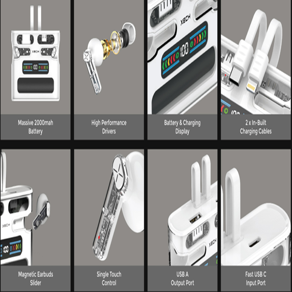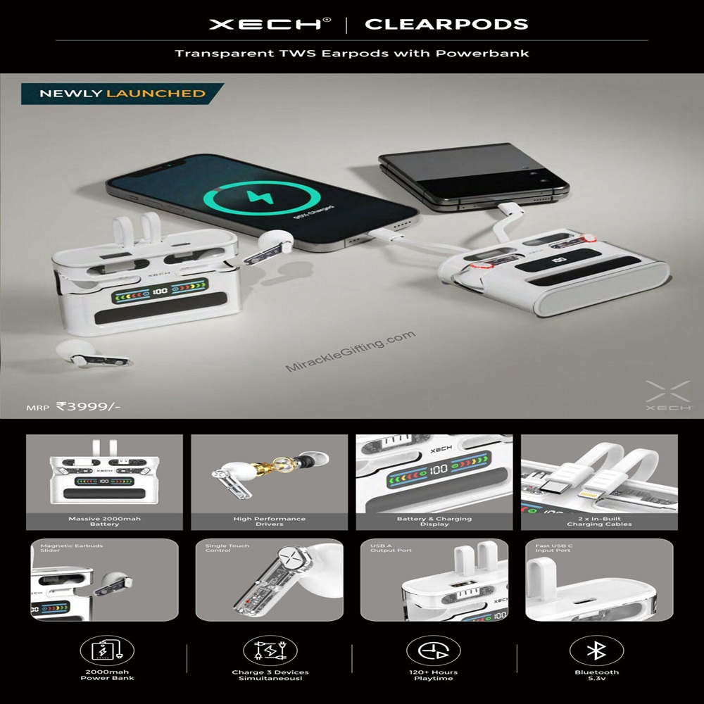 XECH CLEARPODS(TRANSPARENT TWS EARPODS WITH POWERBANK)